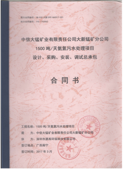 此次簽約中信大錳礦業(yè)有限責任公司1500噸/天高氨氮污水處理資源化綜合利用項目,實際在本項目中使用專利技術。是一種通用的高濃度氨氮廢水資源化處理的方法,達到國家廢物利用回收環(huán)保排放標準(15mg以下)真正地減少了污染,產(chǎn)生了可觀的經(jīng)濟效益,為我公司在錳行業(yè)環(huán)保合作創(chuàng)立了良好基礎。